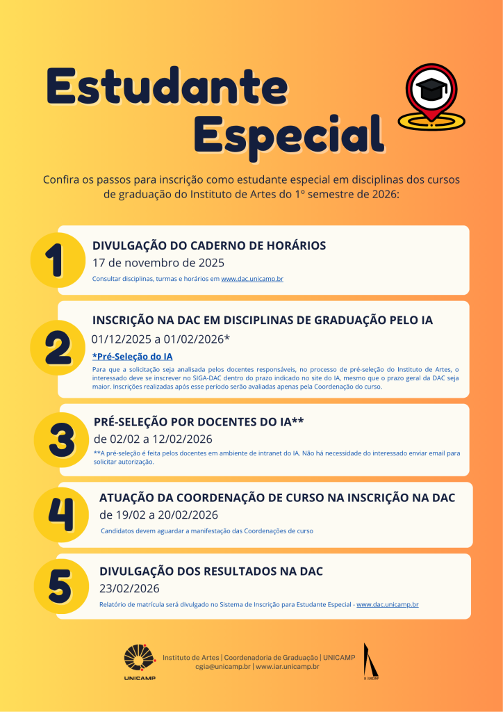 PASSO A PASSO PARA INSCRIÇÃO EM DISCIPLINAS DOS CURSOS DE GRADUAÇÃO DO INSTITUTO DE ARTES